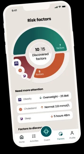 Tolion continuously analyzes your inputs — from questionnaires, wearable data, and daily habits — to identify key risk and protective factors. Based on this, it suggests science-backed activities that help you build healthier routines and sustain positive changes over time.